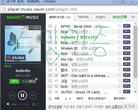 +리스트 수정하고 화면 밝기올려서 다시 찍었고 자세히보면 1분미리듣기는 1분까지 딱 표시되어있는데 나는 1분미리듣기 표시없이 계속듣고있는데..혹시 또 1분이상으로해서 해야한다면 알려줘 또 수정할께!