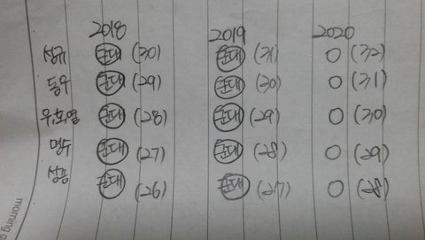 이건 나이대순으로갔을때 (성/동/91라인/엘/쫑)