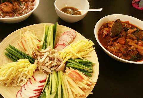 닭겨자 냉채와 짬뽕. 짬뽕이 너무 빨갛게 나왔네요 ㅎㅎ
