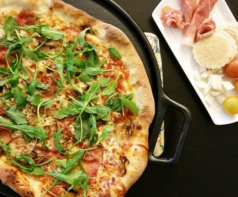 프로슈토와 아루굴라를 올린 피자. 피자 도우 만들어 집에서 구웠어요~ 아래 댓글에 레시피 참조해주세요!