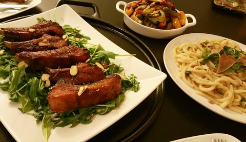 오븐에 구워낸 등갈비와 볶음우동. 그리고 라따뚜이