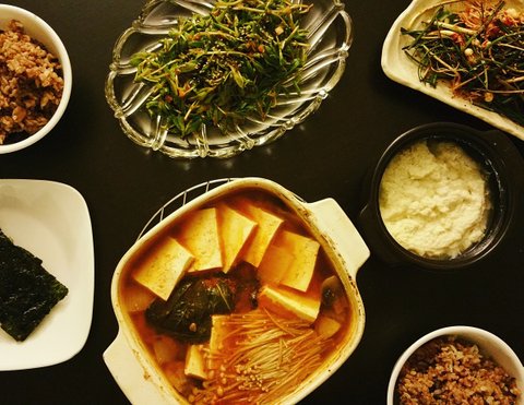 된장찌개와 돈나물, 달래무침입니다