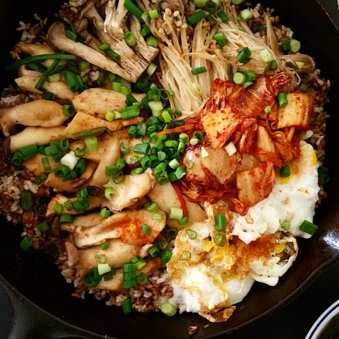 버섯이 남아돌아 만든 버섯 돌솥밥이에요. 버섯은 간장 설탕 마늘 참기름으로 간해 볶아주다가 그 양념에 밥을 볶았어요