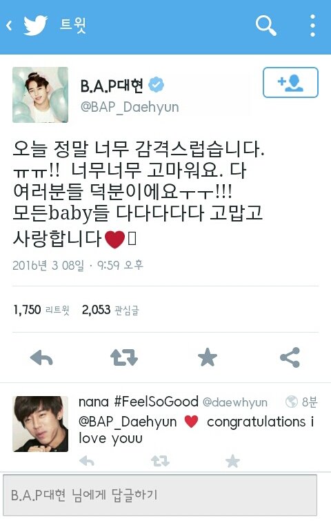 대현이가 고맙다고 트윗했다ㅎㅎ