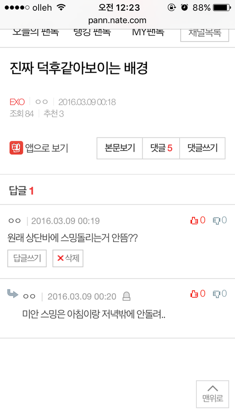 너네들도 스밍 아침 저녁밖에 안돌림????얘만 이런거지?ㅌㅋㅋㅋ시발ㅋㅋㅋㅋ 밑에는 내 스밍인증