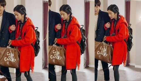 강렬한 레드컬러의 코트에 보노백팩 하나만 메고 있는데 예쁨 돋는거 보소!