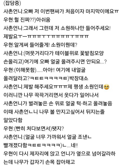 파닭때 팬싸후기래 꽃받침 분의 사촌동생분이 허락맡고 올리신거라고ㅠㅠㅠㅠ