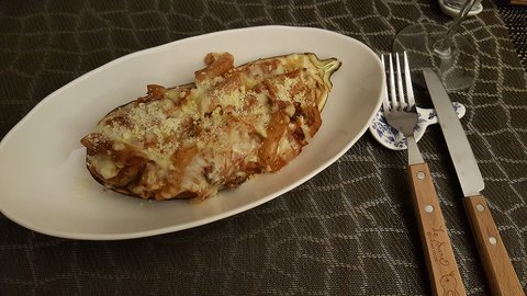 아마 가지속을 파내고 토마토 파스타에 가지속을 썰어넣고 그 위에 생 모짜렐라 치즈랑 생 바질을 넣고 오븐에 구운 요리예요! 개인적으로 치즈랑 토마토랑 생 바질이랑 가지 제가 좋아하는 4단콤보를 넣은 요이라 되게 좋아해요ㅠㅠ 바질향이랑 치즈풍미가 넘나 좋아요ㅠㅜ 이렇게 먹으니까 가지를 더 많이 먹을수 있어서 되게 좋아요! 옆에서 살짝 보니까 만드는 법도 어렵지 않은거 같으니 한번 만들어 보시는 것도 추천합니다!