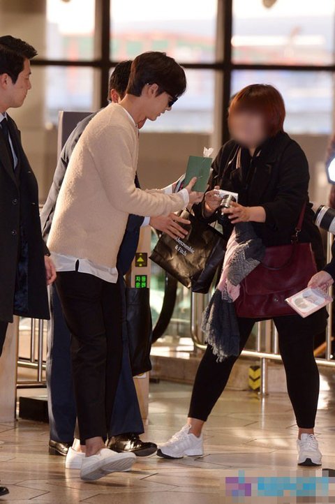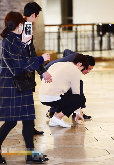 받다가 손이 모자라서 팬이 준 선물을 바닥에 떨굼!!