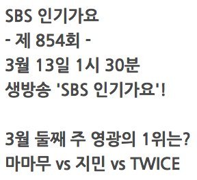 시우민 이번주 인기가요 후보에 올랐어!!!!
