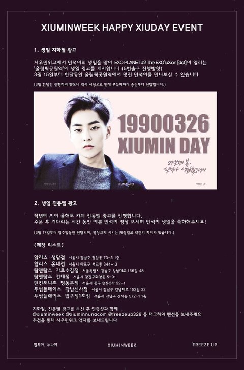 시우민위크 지하철 생일광고&생일 진동벨 광고