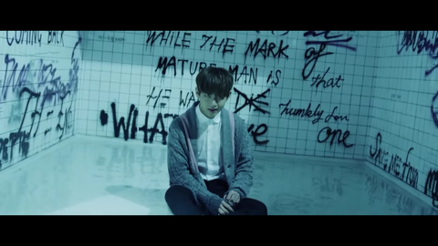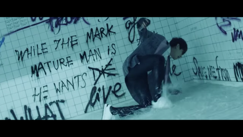 글씨를 쓰고 지우기를 반복함. 아마 태태의 내적 갈등이 아닐까라고 유추해봄. 왼쪽에 잘 보이는 검은 글씨가 이씀. "While the mark mature man is he wants die." 그리고 태태는 he 앞에 what을 씀. 또한 die를 지우고 live를 씀. 이 문장 뜻은 "성숙한 남자를 나타내는 것은 그 남자가 죽음을 원한다"라는 뜻임. (어법상 해석하기 애매함.. 양해부탁) 그리고 태태는 die밑에 live를 쓴다는 것은 자신이 살고 싶다는 애절한 마음을 글씨로 써내린 것일거임. 즉, 태태는 이중인격인것 처럼 죽길 원하다가 살고 싶어하다, 계속 갈등하는 거임.
