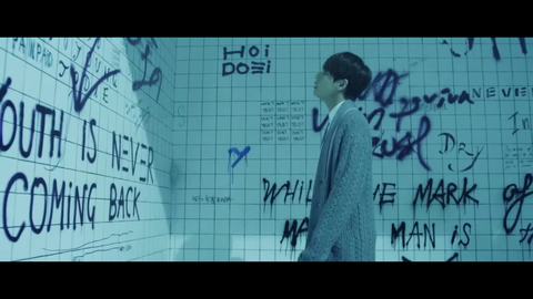 Youth is never coming back. 말 그대로 해석하면 젊음은 다신 돌아오지 않는다라는 뜻임. 아직 애들은 젊음을 추구할 나이가 아님. 그래서 우린 젊음 대신 청춘으로 해석할 수 이씀. 그리고 Hoi Doei라는 글씨 밑에 작은 글씨로 도배되어 이씀. "Can't Trust"라고 반복되면서 쓰여져 이씀. 믿으면 안된다, 믿을 수 없다라는 의미를 가지고 있는 듯함. 그렇게 중요한 건 아니지만 일단 닥치고 적어봄.