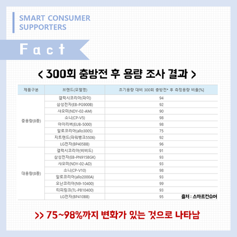 어떤 자료를 봤는데 보조배터리에 표시된 용량만큼 충전할 수 있는게 아니래요