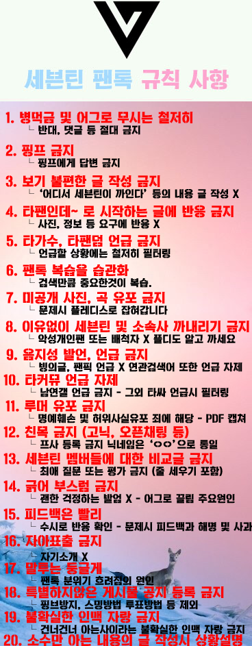└ '어디서 세븐틴이 까인다' 등의 보기 불편한 내용이 담긴 게시물 금지