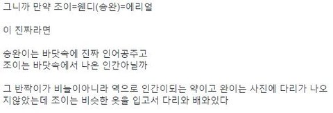 웬디 바닷속에있던 인어공주 마녀와 계약을해서 물 밖으로 나온 조이