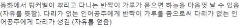 조이는 웬디에게 다리를 주고 웬디는 조이에게 반짝이를줌