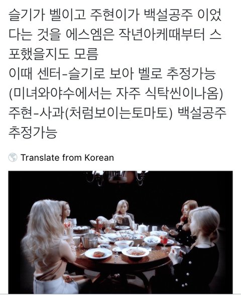조이가 마녀일가능성이 있는 이유: 아이린이 사과를 등지고 앉음(독사과 거절)