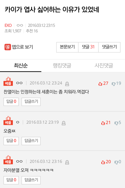 카이팬들 세훈이 베톡에서 까는거 잡았다