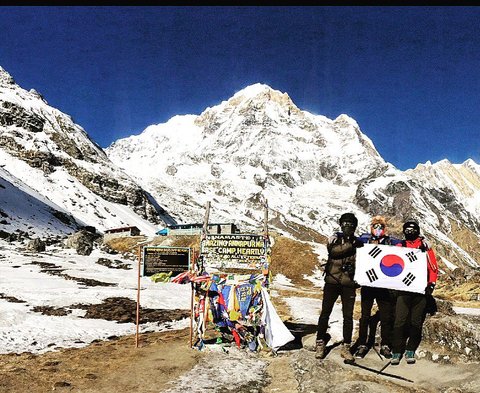 아, ABC에 도착하시면 Annapurna를 등정하시고 하산하시는 도중에 운명을 달리하시게된 박영석 대장님과 신동민, 강기석님을 기리는 장소가 있는데요. 이곳에 들려서 고인의 명복을 빌고 왔답니다.