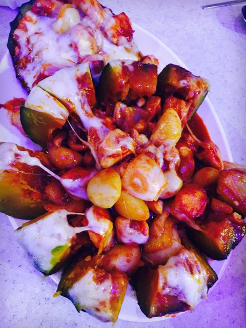 단호박 치즈불닭! 닭은 언제나 사랑이죠^^ 조명이 정말 맘에안들어요 파란색조명이라 흑ㅠㅠ