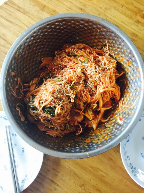 밥하기 귀찮을때 골뱅이 한캔 투척하여만든 골뱅이소면 양푼이에 먹어야 진리지유