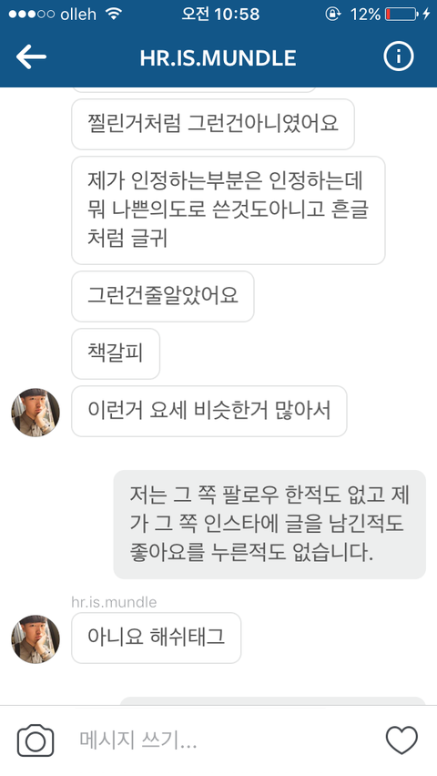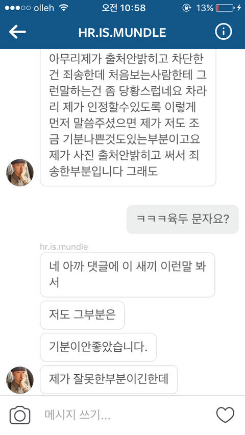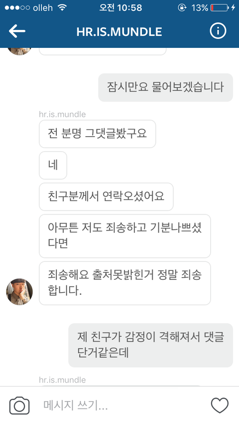 올려서 메세지로 서로 사과했고 좋게 마무리 되는 줄 알았는데