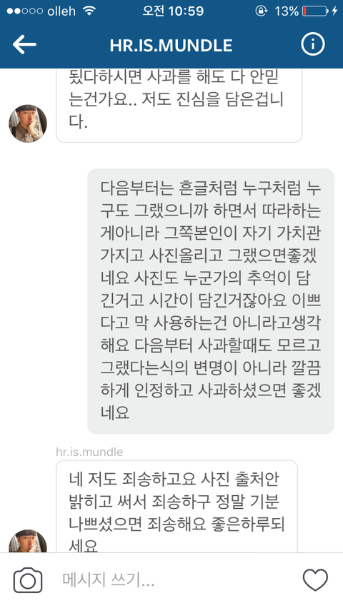 이렇게 메세지를 주고 받고 그 분에게 죄송하다는 사과를 받았는데