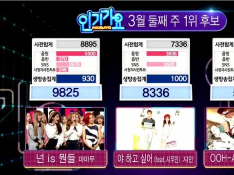 웅녀들 모두 수고했어 사전투표나 음반 점수가 전혀 없어서 아쉽 뮤비 점수도 좋고 음원도 생각보다 많이 안 밀렸는데... 문투도 열심히 했고 말이지 너무 속상해 말자 좋은 노래니까 앞으로도 스밍하고 뮤비도 열심히 보기로 하자구 웅녀들 모두 수고했어 슈이팅!!!!