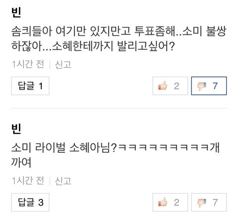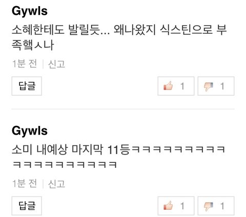 이거 보면 알겠지만 똑같은 애인데 닉네임 바꿔가며 악플 쓰고 있음...ㅋㅋㅋ