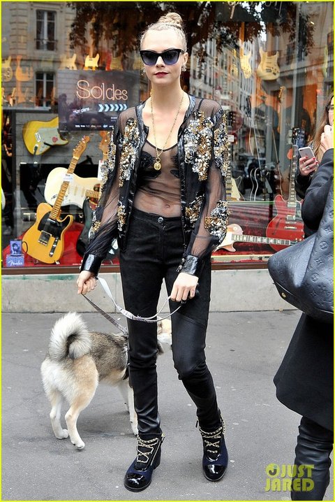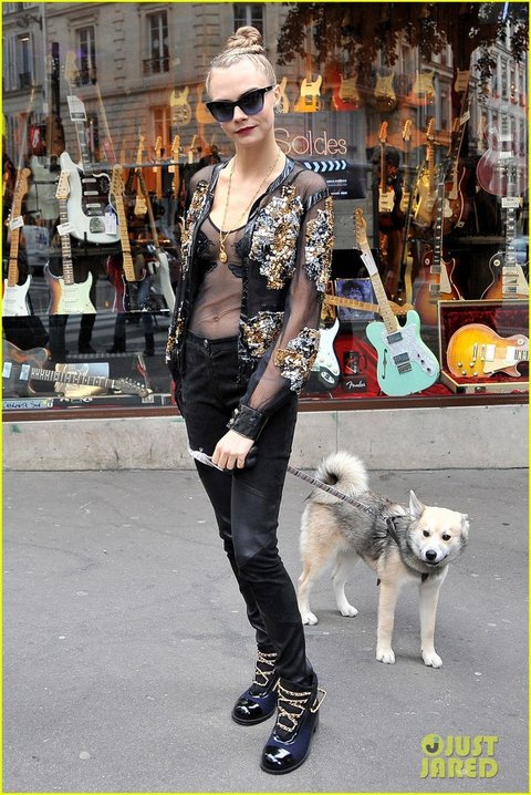 강아지랑 쇼핑하는 모습 찍힌 모델 카라 델레바인