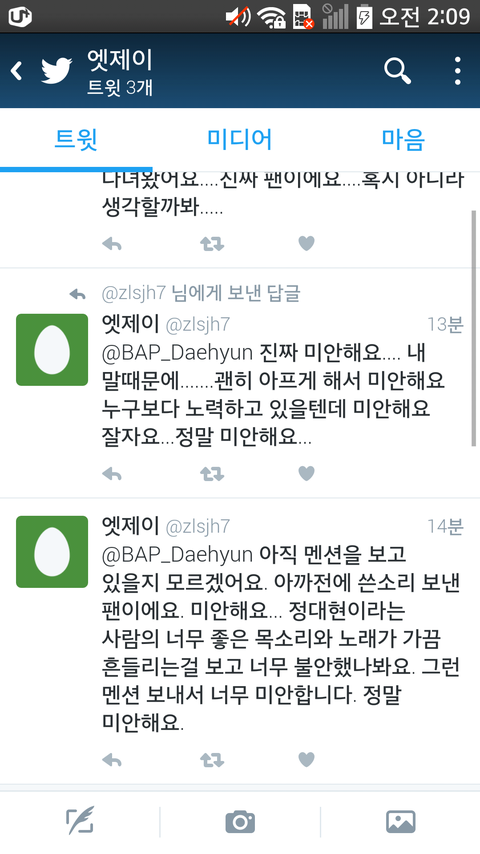 그래도 사과했네. 내가 볼땐 대현이랑 저분 둘다 잘못이라고 봄. 저분도 듣는사람 기분생각하면서 썼어야 했고, 대현이도 그런거 일일이 답멘해서는 안돼고. 암튼, 정대현은 동네북이 아니니 말 둥글게둥글게 하고 팬이면 응원많이했음좋겠다. 그리고 일부 베이비들이 저분한테 뭐라 욕하지 말았으면. 나도 저 트윗올라오기전까지 조카욕했었는데 사과한거보고 접음. 본인도 당황했겠지