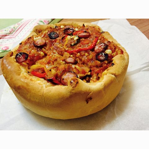 시카고 피자에요 ! 처음 만들었을때 수분이 부족해서 빵이 좀 딱딱했긴했지만 맛있었어요 굳굳