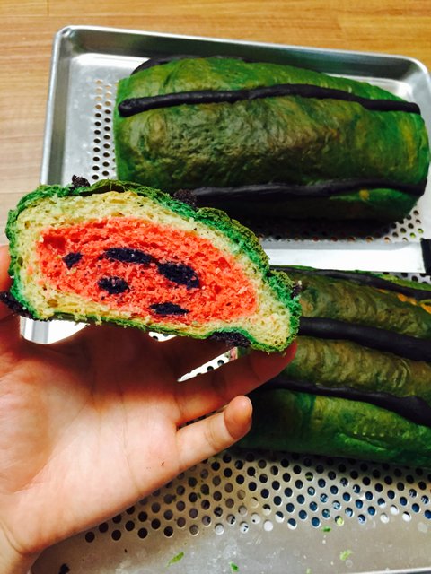 너무 더운 여름에 이렇게라도 시원해지고파 수박식빵을 만들었어요