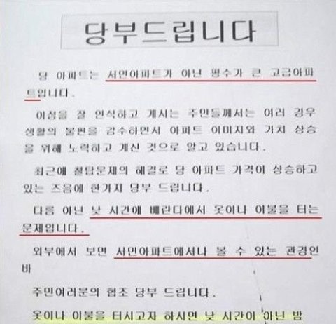 흔한 금수저 아파트 안내문