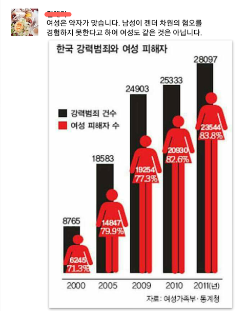 여자들의 사회 진출이 높아졌다고 해서 남녀간의 힘의 격차가 줄어든 건 아니잖아...