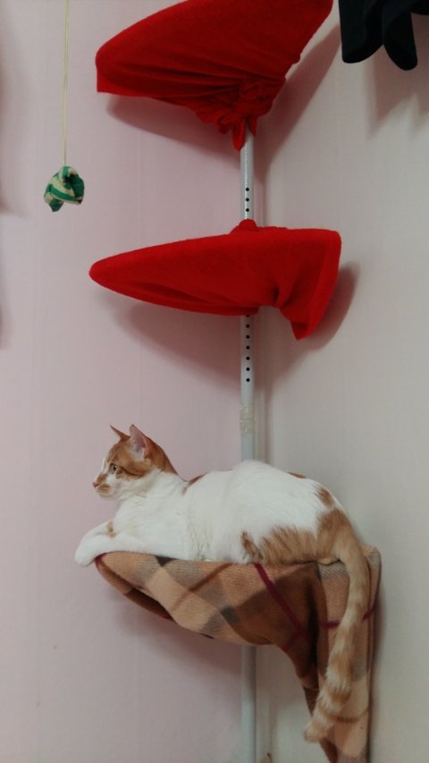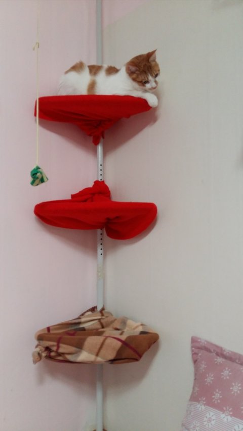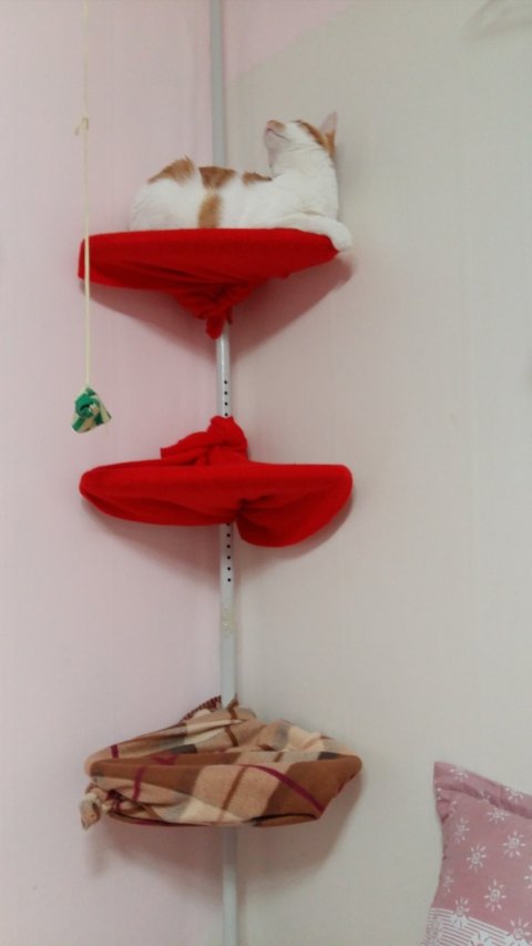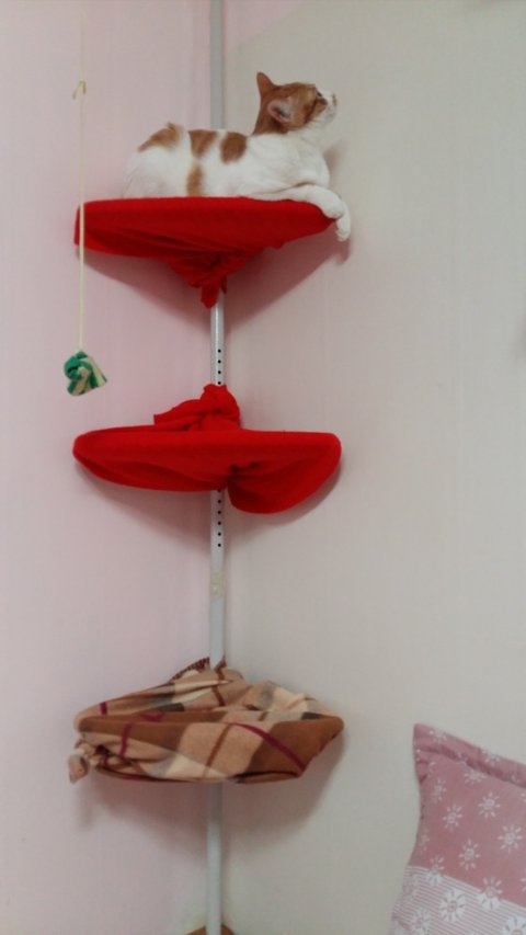 캣타워가 아플것 같아 집을 뒤져가며 덮어줄것을 찾아 겨우겨우 깔아줬음.