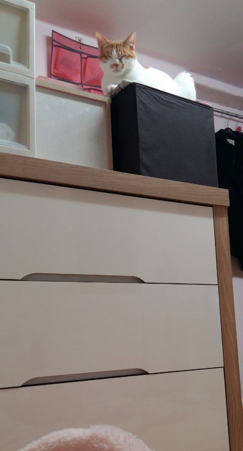 계속 야매 캣타워에만 올라감.
