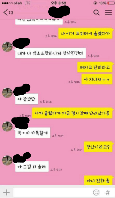 세상에 왜이렇게 관종이 많냐 장난이라고 이런식으로 엉뚱한사람 잡고 아님말고식이자나 가만있는 애한테 진짜 왜들 나서서 이러냐 자기 최애 아니라고 함부로 장난쳐도 되는거야? 진짜 가지가지한다
