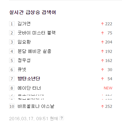 방탄이들 실검!