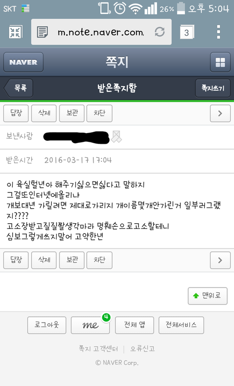 사진하고 글올렸는데 이런쪽지가 왔어요ㅋㅋㅋㅋ