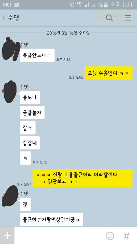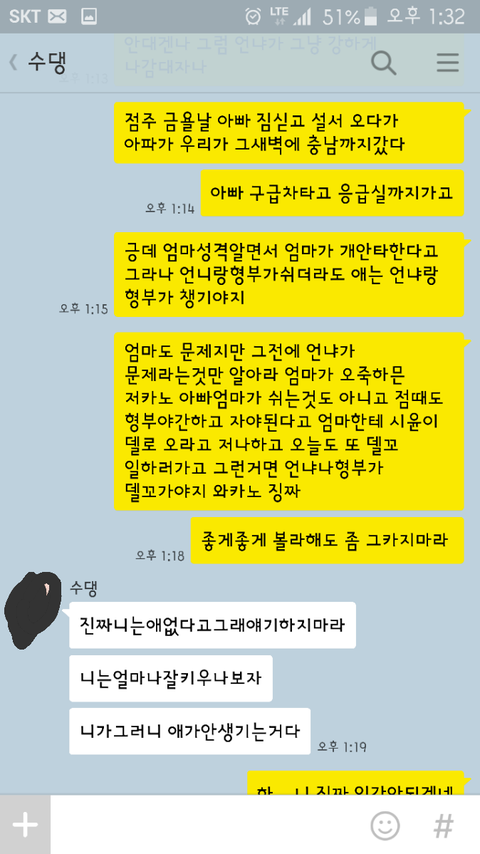 이런일이 한두번이 아니였었기에 바로 언니한테 톡을 보냈습니다 카톡내용은 아래와 같구요