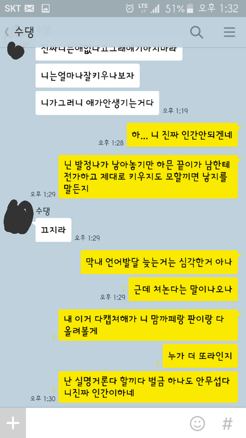 나ㅡ 인간안되겠다 넌 발정나서 싸질러 놓기만 하면 다냐 낳았으면 애들은 니들이 챙겨야지 남한테 맡기냐