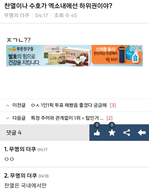 시우민최앤데 카이가 1위같음