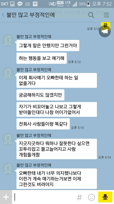 화난건보이지만 말은 쎄지않음 그냥 팩트만 조곤조곤 말한것. 일단 모자이크가없는걸봐서 쌍욕이 없구만 착하네..그리고 철없는 언니 조심..
