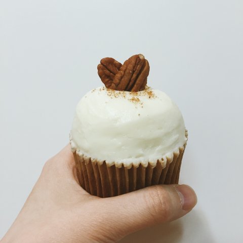 크림치즈 프로스팅 올리고 피칸으로 하트 장식 했어요 !