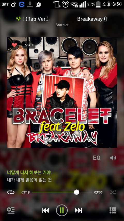 Bracelet이 'Breakaway'라는 곡을 발표했는데(오리지날버전) 랩 버전으로 다시 제작하기로 하고, 젤로에게 피쳐링 제의를 함. (B.A.P나 젤로와는 친분 1도없는 사이. Bracelet이 k pop에 관심이 있긴 했음)