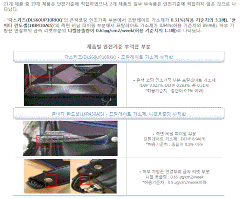 폼알데히드 등 유해물질이 가방재료에 기준치 이상으로 포함되어 있는 것도 있네요ㅠㅠ