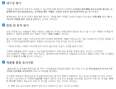 소비자원에서 직접 조사해서 각 브랜드 가방모델멸 특징까지 세밀히 분석해 놓은 정보가 있어서