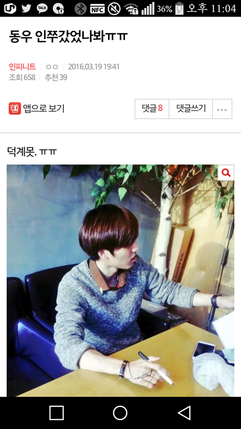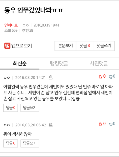 토요일 저녁쯔음에 동우가 인쭈를 갔었다는 글이 올라옴